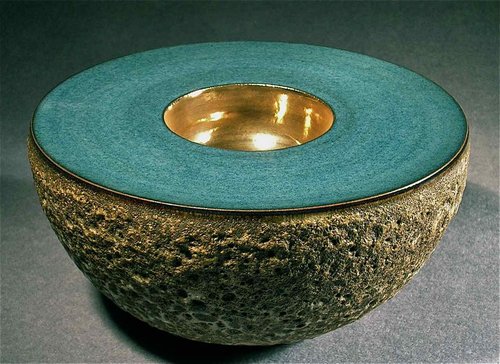 The gold interior creates a focal point contrasting with the rugged textural exterior.